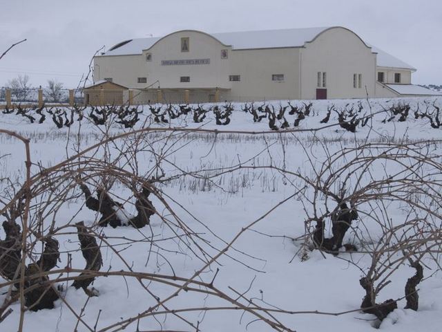 | Viña y bodega cubiertas de nieve. Gentileza de Concha Arias |